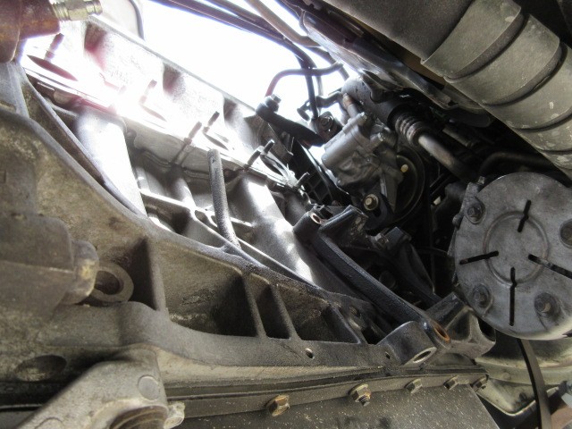 エアコンコンプレッサーに当たって抜けないので、ACブラケットを外して行きます。