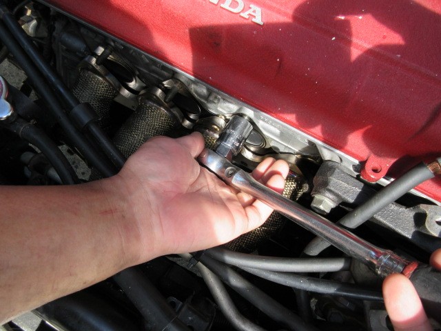 今度は、エキマニのスタッドボルトが邪魔になり入らないので、ボルト抜いていきます。
