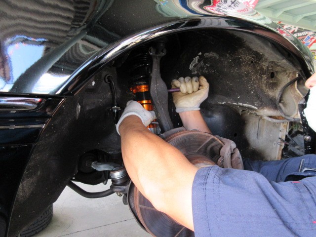後は車高を指定の高さに調整して、アライメント調整に入って行きますね。