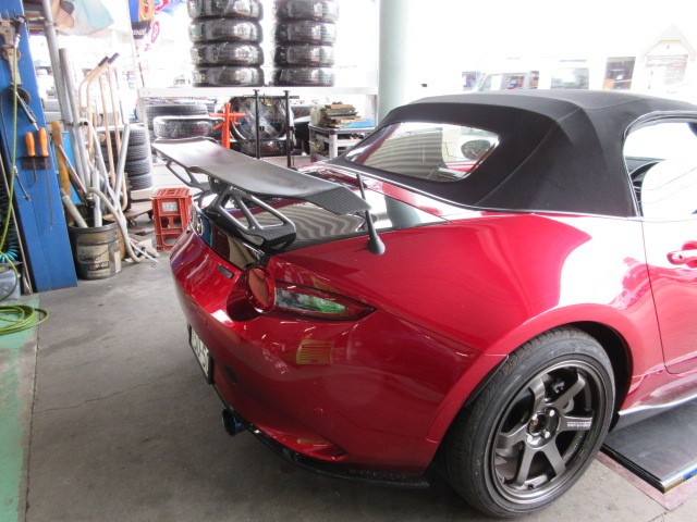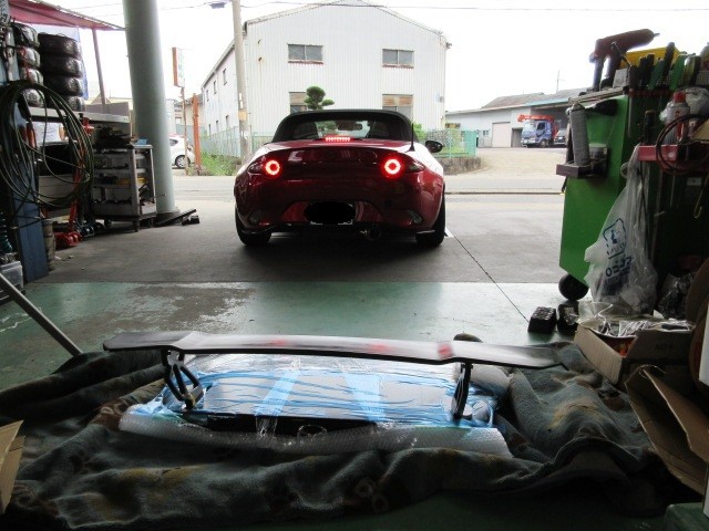 ND5CロードスターにGTウイングの取り付けです。
