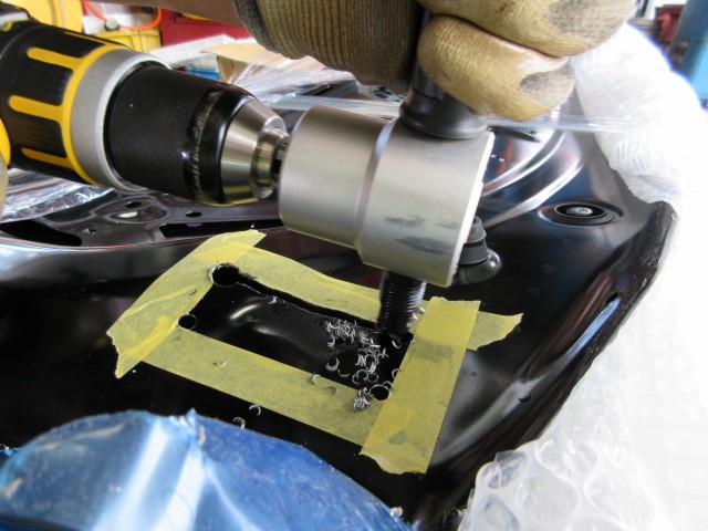 位置決めして穴開けて裏から補強材を当てる準備をします。