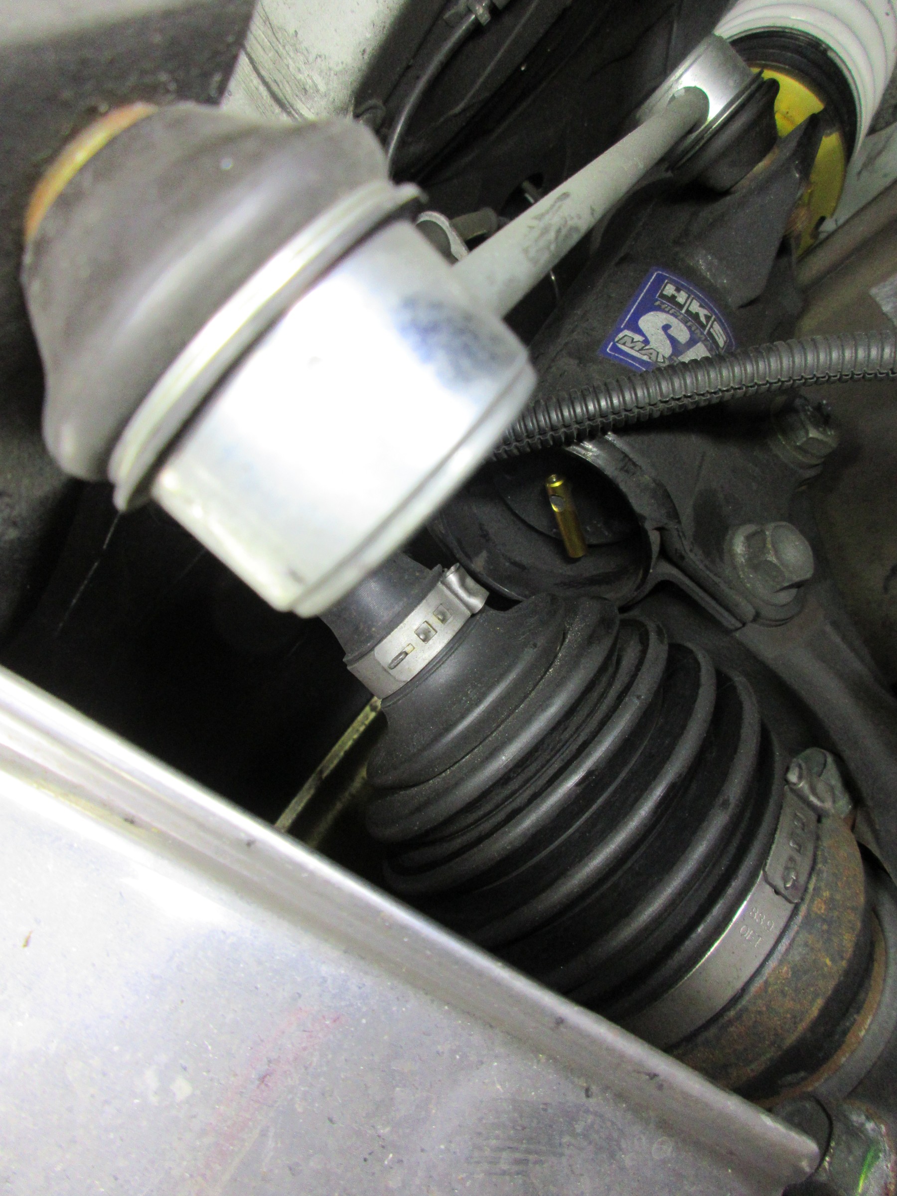 ラジエーターホースとのクリアランスギリギリですね。