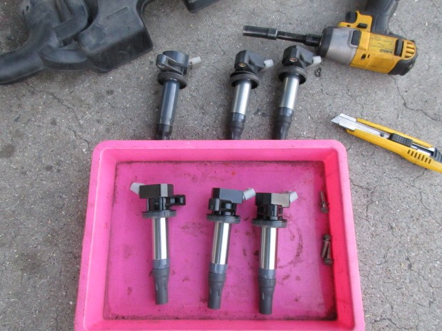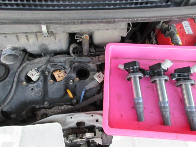 先日 エンジンがブルブルで来店してくれたタントの新品イグニッションコイルが入荷したので、交換です。