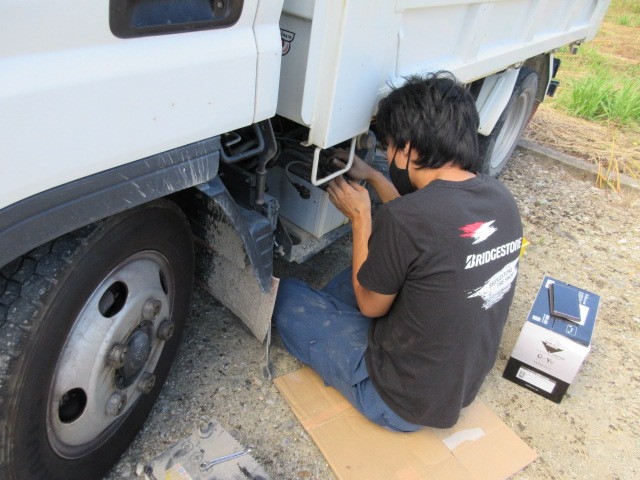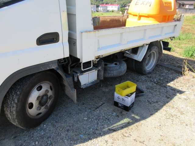 先日 継続検査をしたキャンターダンプのバッテリーが弱っていたので交換します。