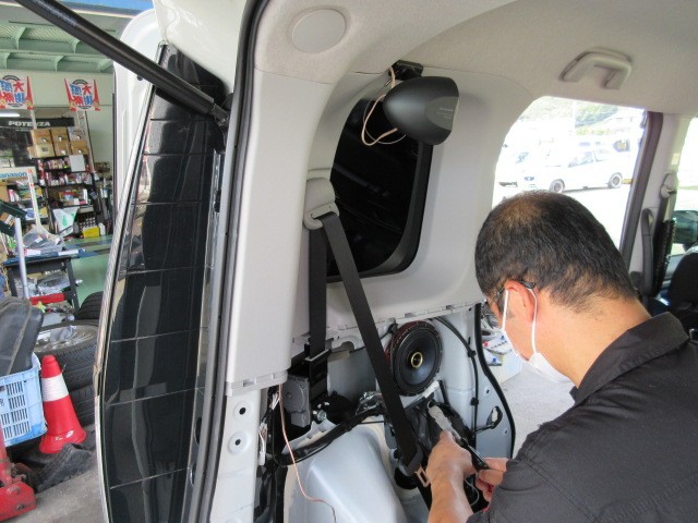 お得意様のトールにサテライトスピーカーの取り付けです。