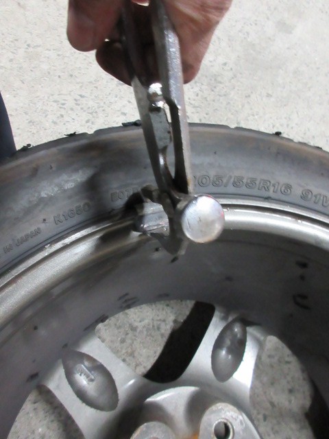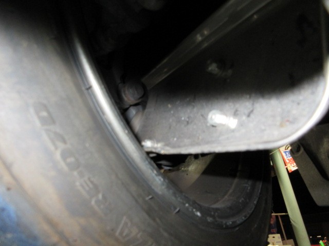 異音がするので診てみるとフロントブレーキの導風板にバランスウエイトが当たっていました。