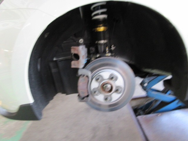 先日のサーキット走行後の点検です。左の前輪から煙が上がっていたので、ゴム類が焦げていないか診ておきます。