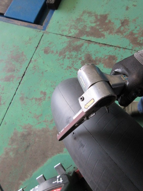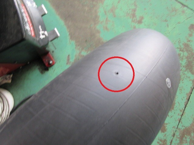 傷が、少し大きかったのでタイヤの方にも充て物をしておきます。万全