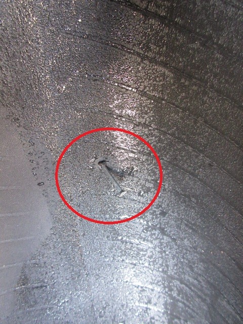 原因を探していると、何と釘が逆さまに刺さっていました。