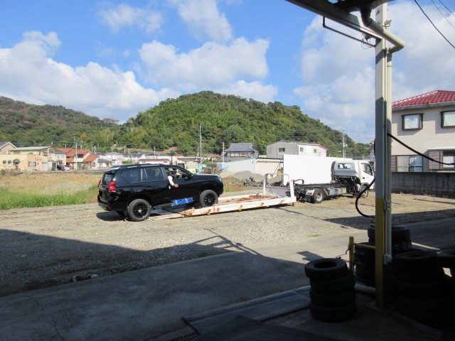 先日 車高上げした。プラド引き取りに来てくれました。