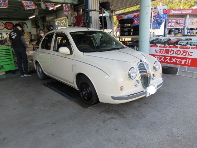 希少車ビュートのタイヤ交換です。ベースはマーチかな?タイヤサイズはマーチですね。