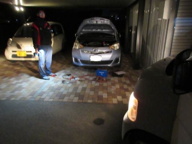 閉店後ロードサービスからの依頼で、バッテリー上がりの出張修理