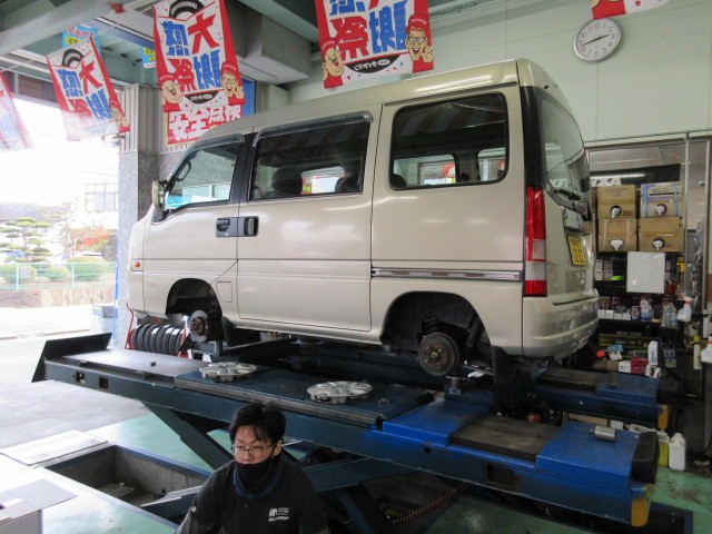 サンバーのタイヤ交換です。
