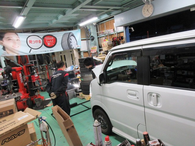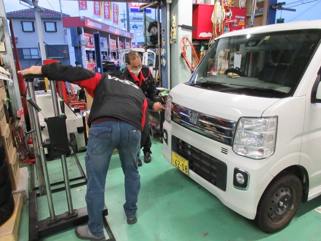 プリウスにスタッドレスタイヤ装着です。