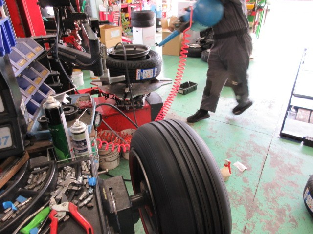 同サイズのタイヤが無いのでスペアータイヤお貸ししておきますね。