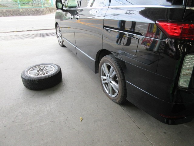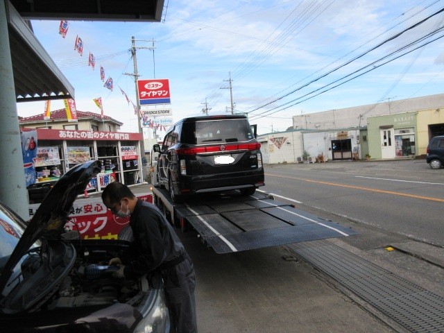帰ってみるとエルグランドのお客様が、ロードサービスにてドナドナされて来ました。