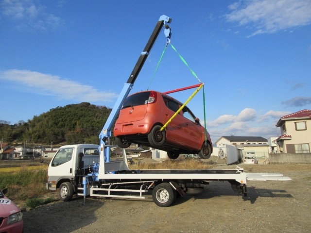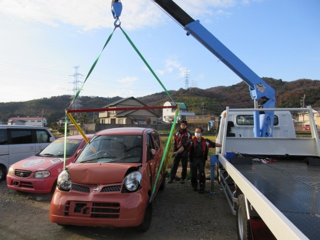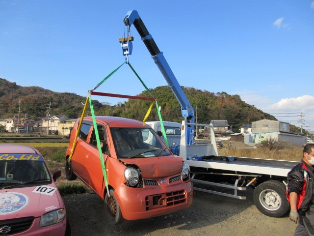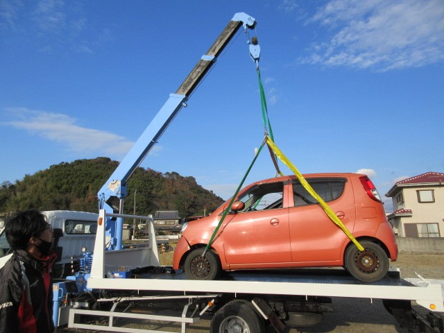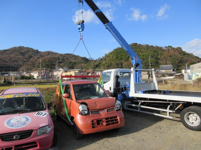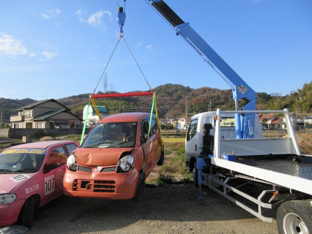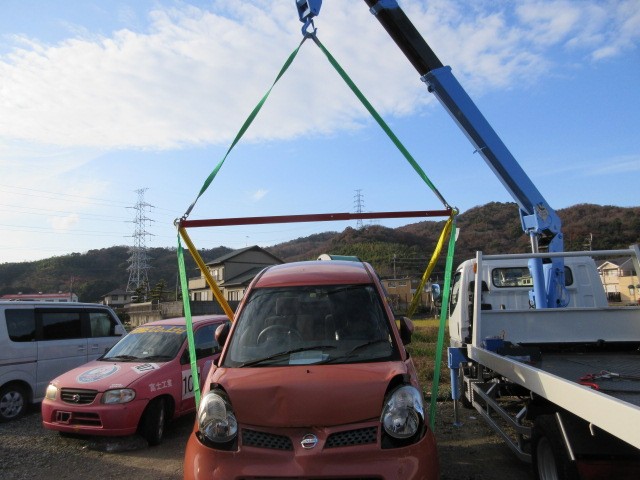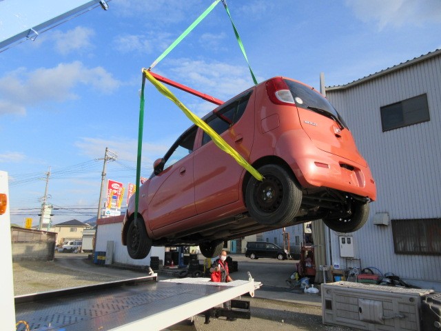 上手く引き上げられましたが、スリングベルトがフェンダーに当たりますね。