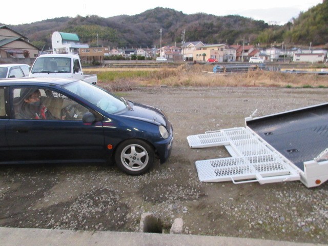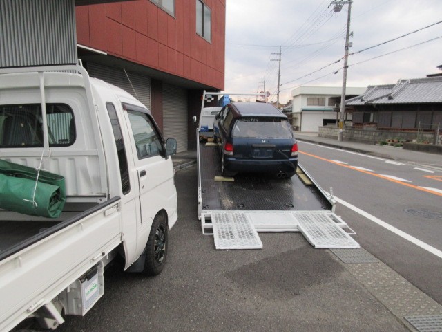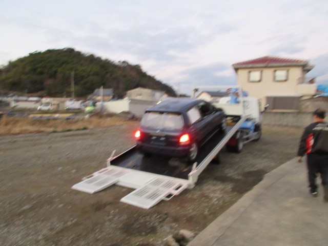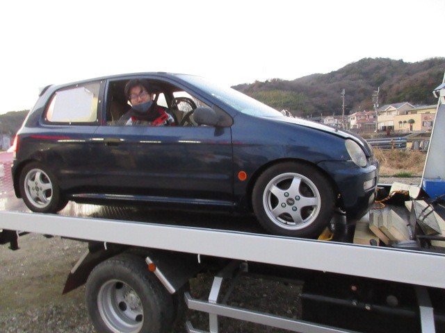 ナンバー無しなので積載車に乗せてGo~