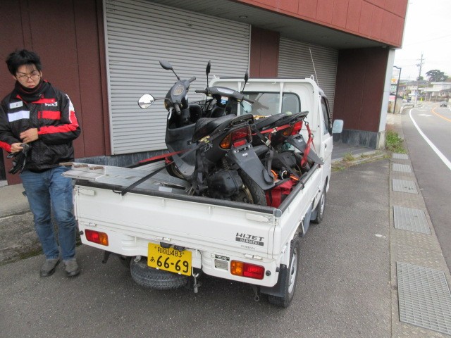 スクーター達は軽トラに乗せて・・・