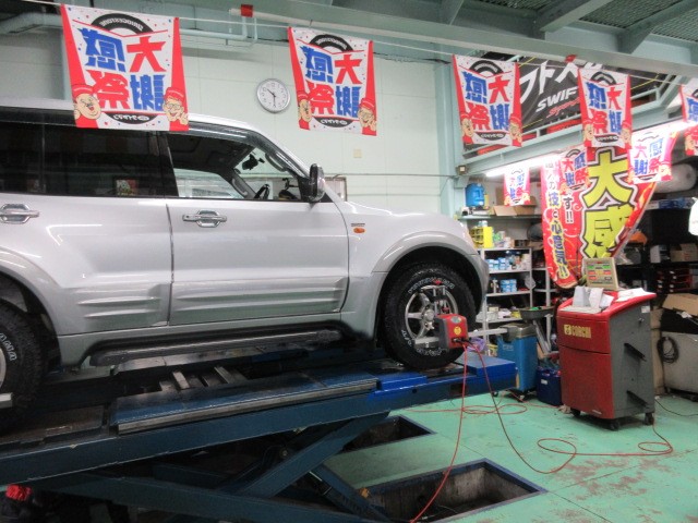 パジェロのお客様「最近タイヤの内減りが酷くて」とのご相談で・・・