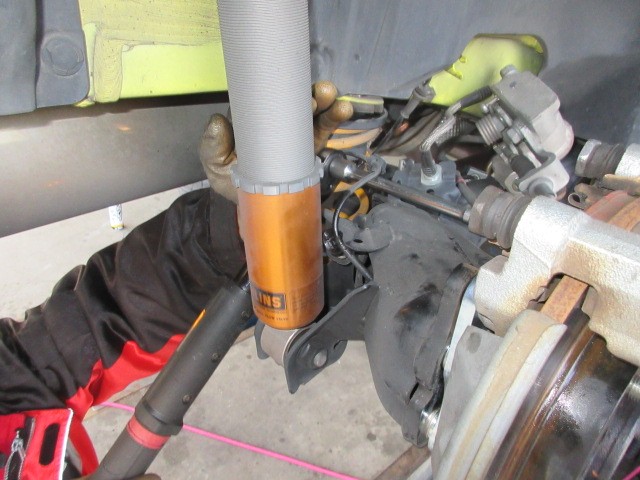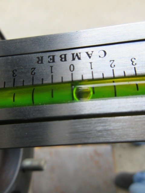 取り付け前のキャンバー測定しておきます。リフトに上げた状態で30分程ですね。