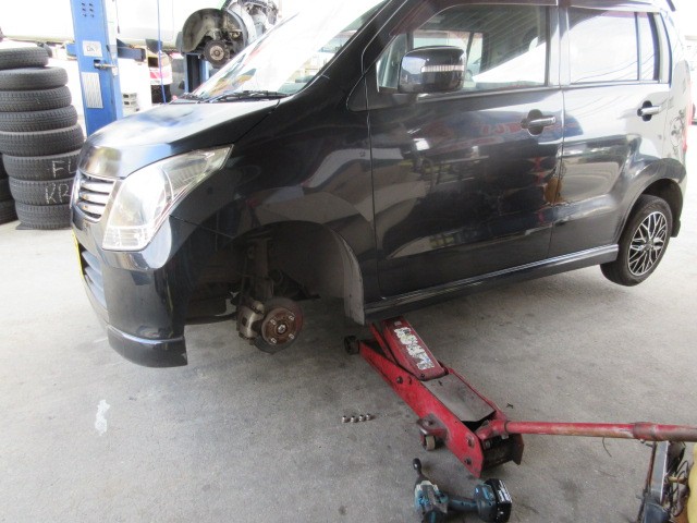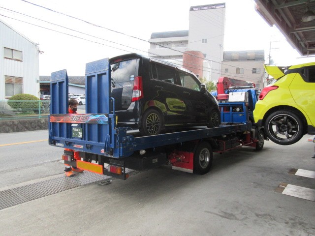 ワゴンRのお客様タイヤがバーストしたので、ロードサービスにてご来店