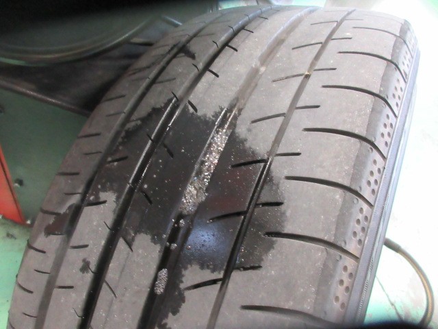 外して診ると以前のパンク修理痕からでした。「再修理はお勧めできません」とお伝えすると