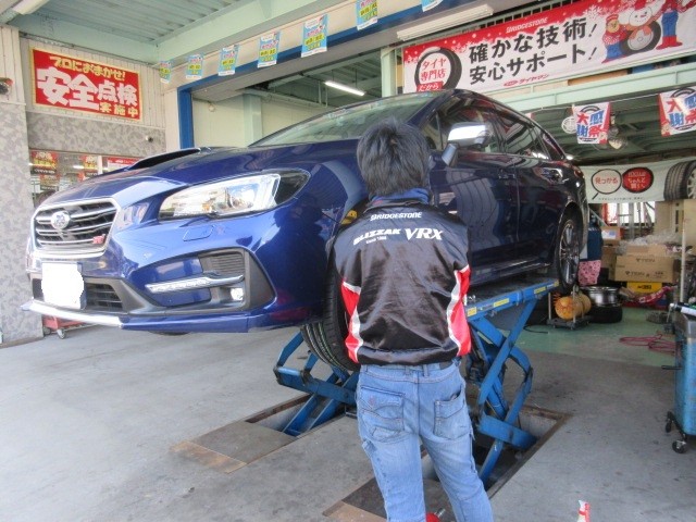レボーグのお客様タイヤの値上がり前に2本交換です。後の2本は預かって後日の交換です。