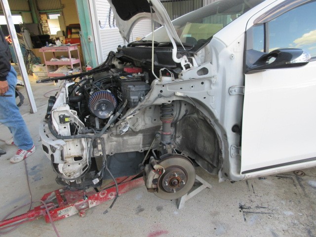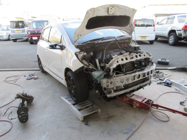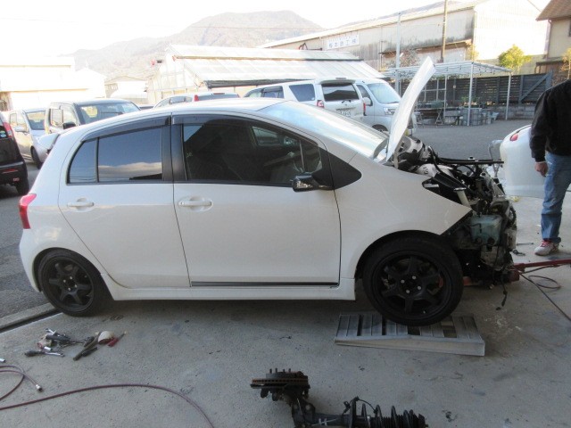 先日 鈑金修理で預かたビッツRS お客様の代わりに修理の進行状況を見に来ました。