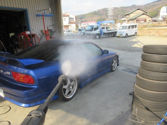 継続検査で先月から預かっている180SXやっとメーターの修理も終えて組む事が出来たので、納車前に洗車です。