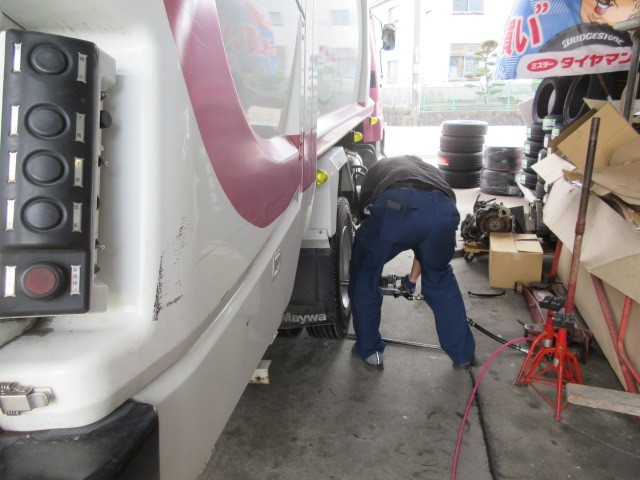 トラックのタイヤ交換です。