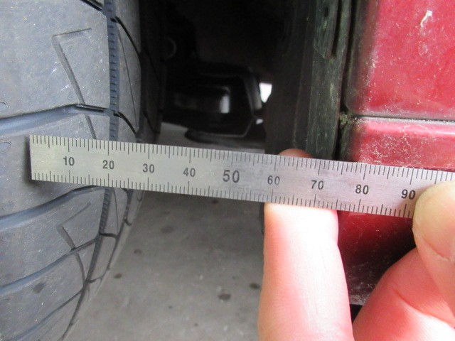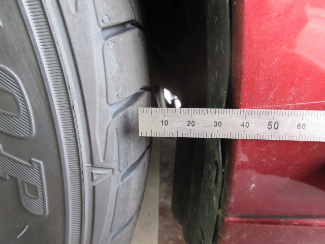 左の前タイヤが後ろに寄っていますね。