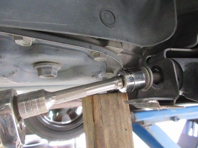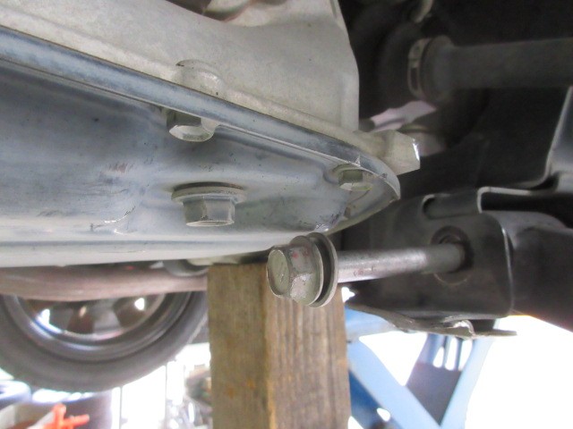 楽勝だと思っていましたが、ATのオイルパンに当たってロアアームのボルトが抜けてきません・・・