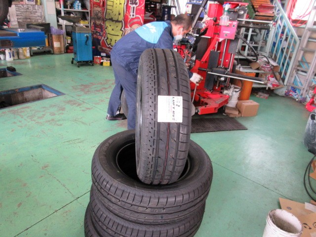 RAV-4のタイヤ交換です。ダイちゃん散髪したんですか?スッキリしてますね。