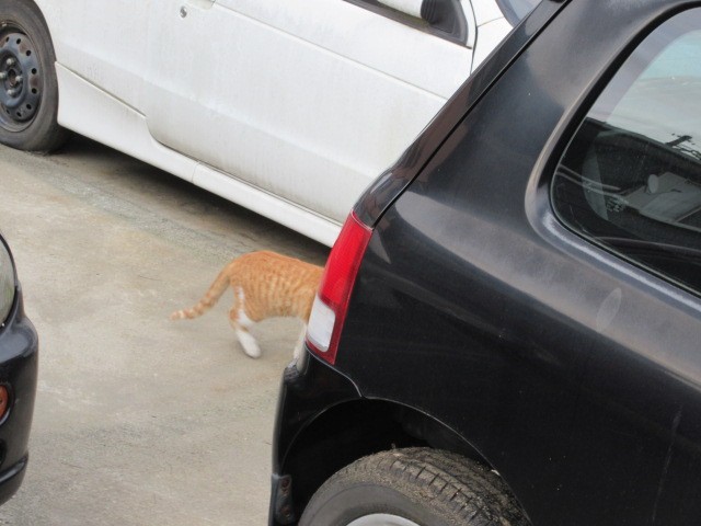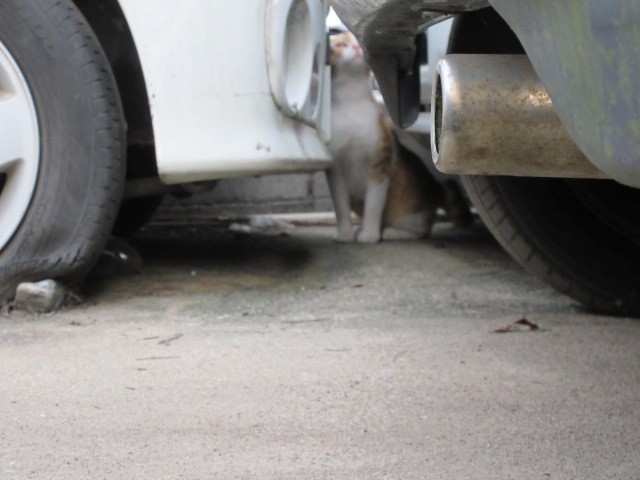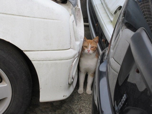 ニャンコを挟まない様に宝物車(社長曰くゴミ)を移動して掃除します。
