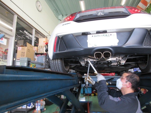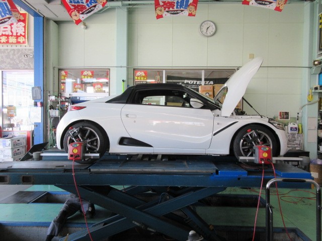 S660のアライメント調整です。ご自身で整備しているそうで、左右のキャンバーのズレを気にされてるようでした。