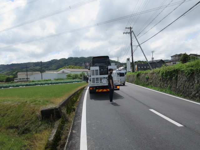 道幅が狭いので警察官にお願いして道を完全い封鎖をして貰い作業しました。