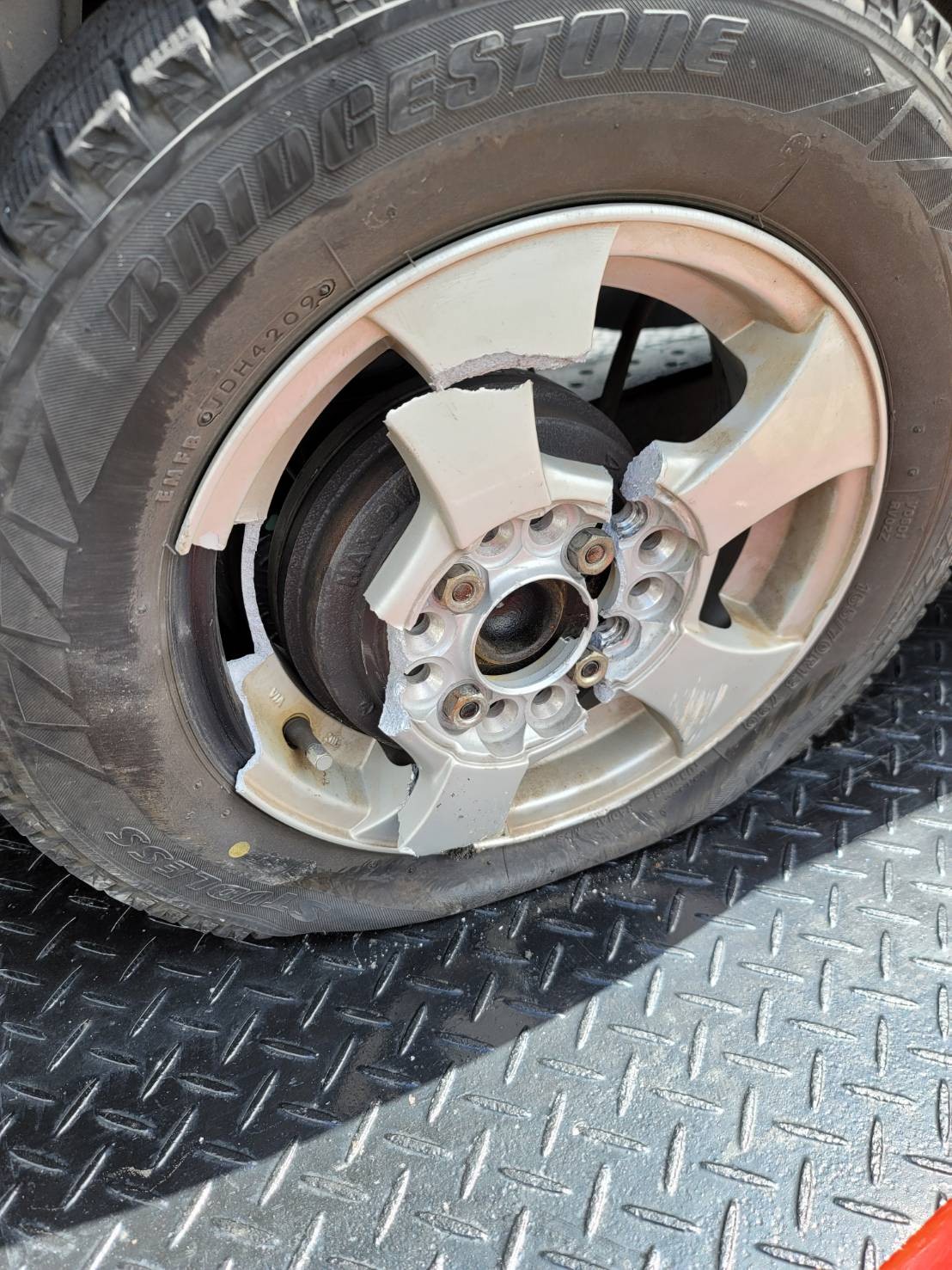4本中3本ホイールが、砕けていました。無残 こんな事なるんですね?