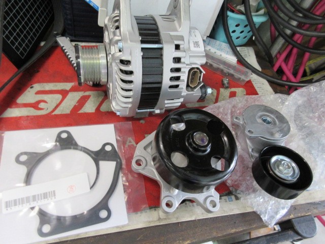フレームの奥にウォーターポンプ隠れてますね。これも交換します。