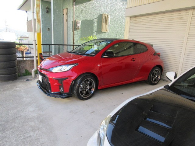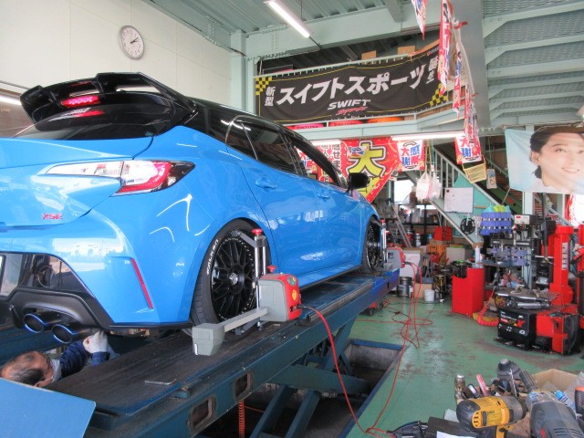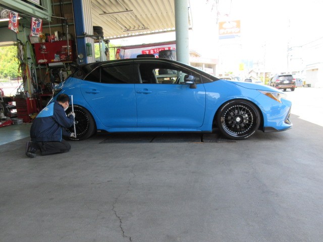 カッコイイ青いカローラスポーツですね。赤いGRヤリスと並べるとタイヤマンカラーの出来上がりですね。
