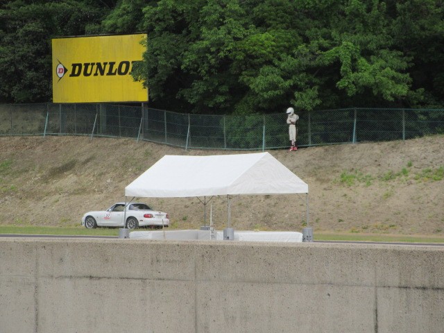 水漏れでストップしたロードスターです。ドライバーさん丘の上まで逃げていました。