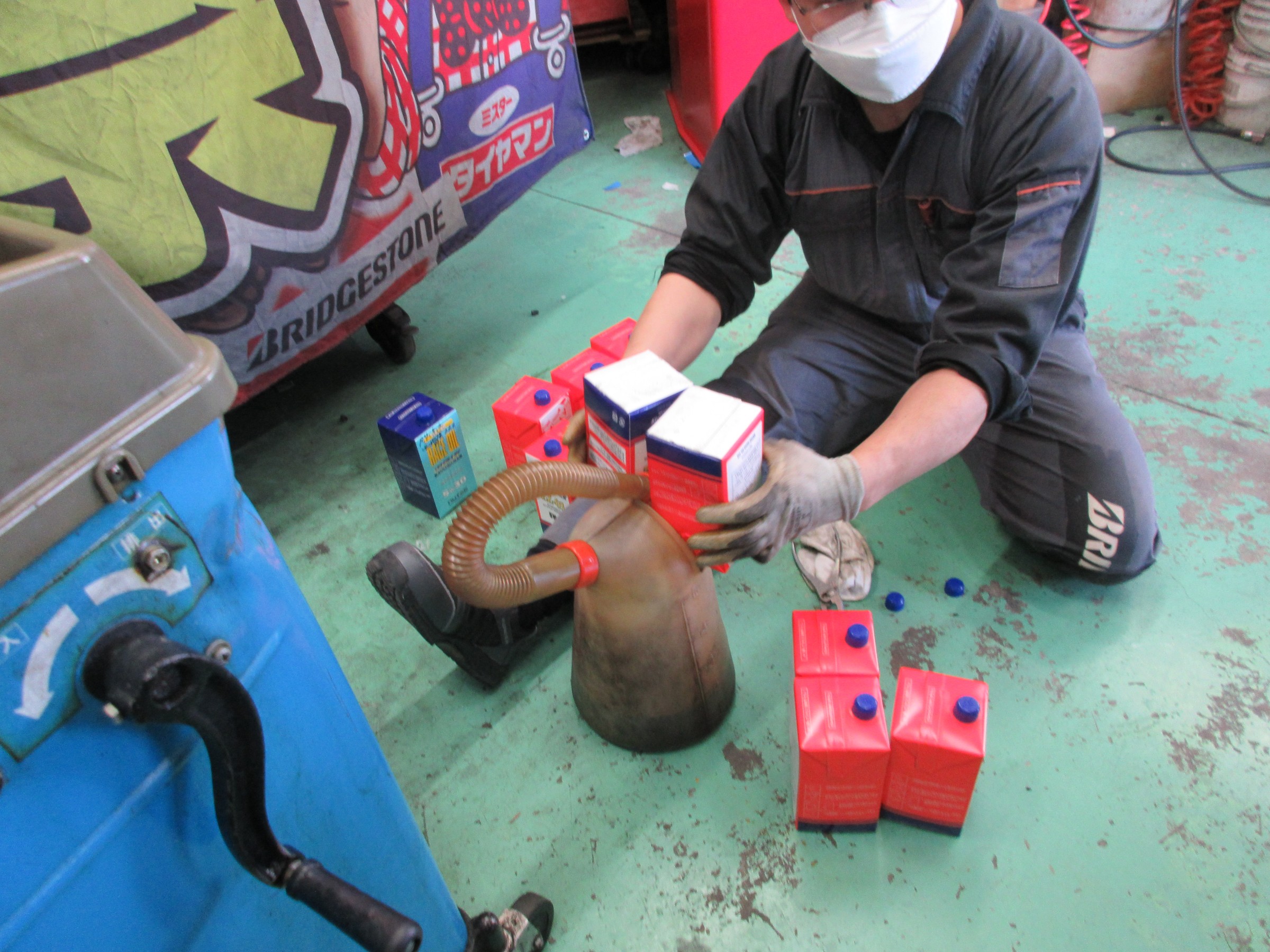 ブレーキフルードのエアー抜きと下廻りの点検です。