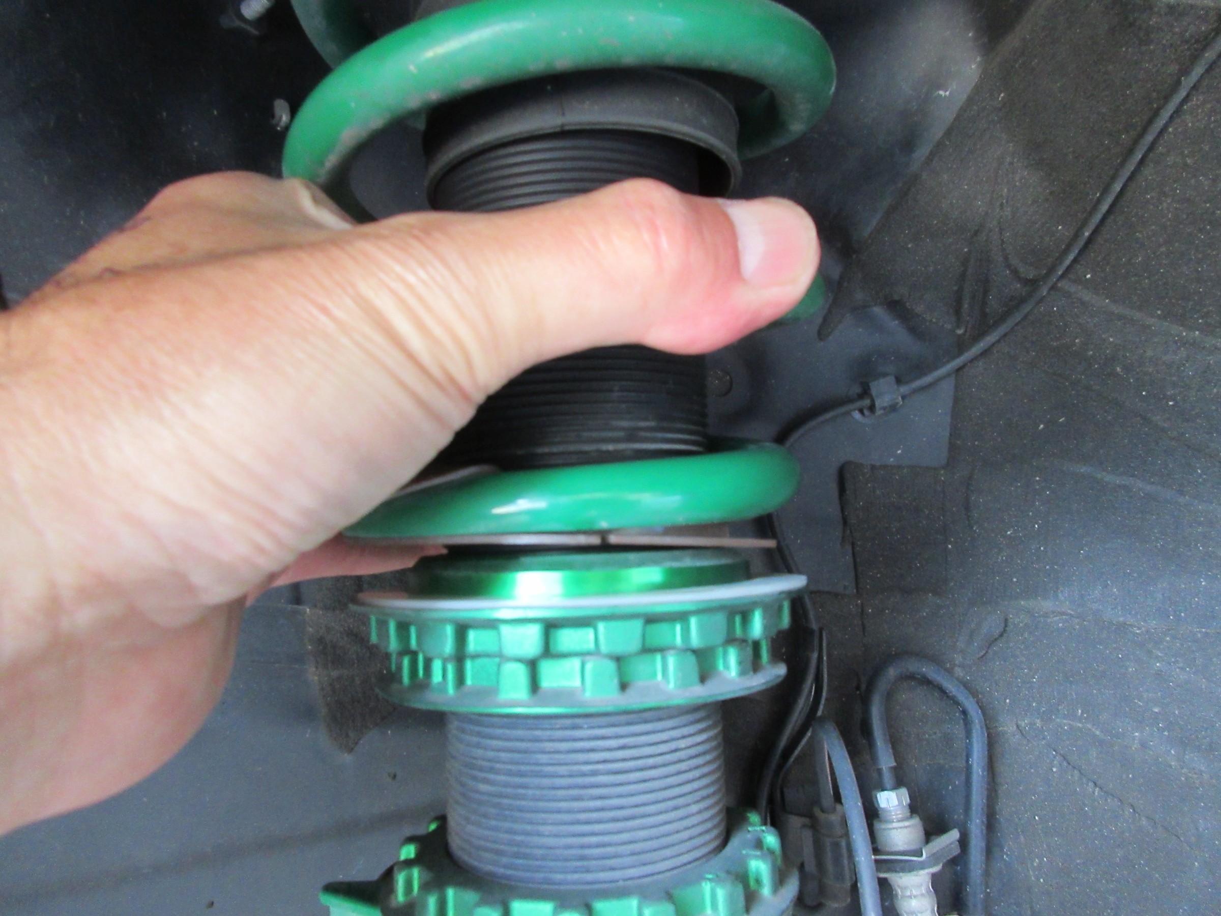 以前 車高調を付けさせて頂いたアルファード「ハンドル切ったら変な音がする」との事だったので、メーカーさんに問い合わせすると、スプリングシートの当たり面の掃除と位置を変えて欲しいそうです。