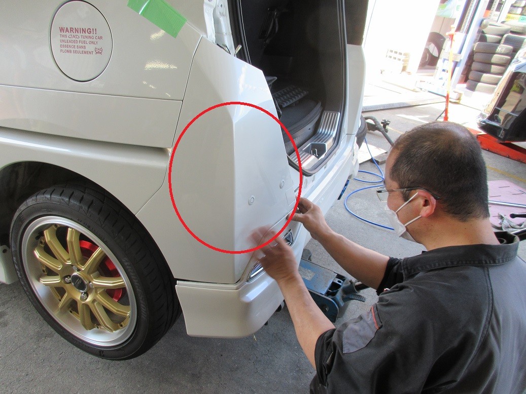 お馴染みのトールのお客様、診ても判らないほどのキズで、バンパーコーナーの交換です。