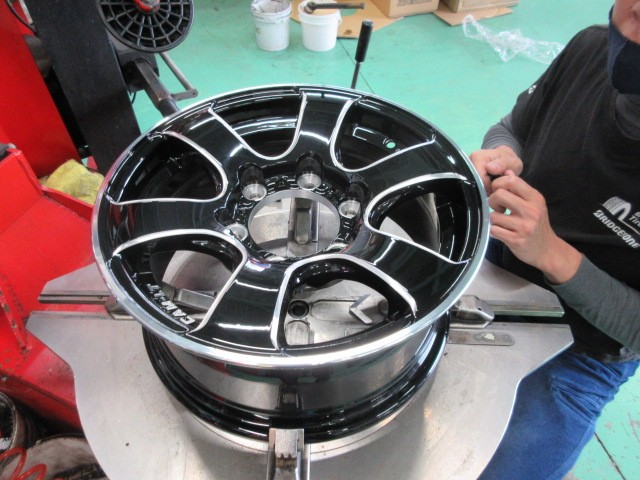トヨタのキャンピングカーのカムロード専用ホイールを組んで行きますね。