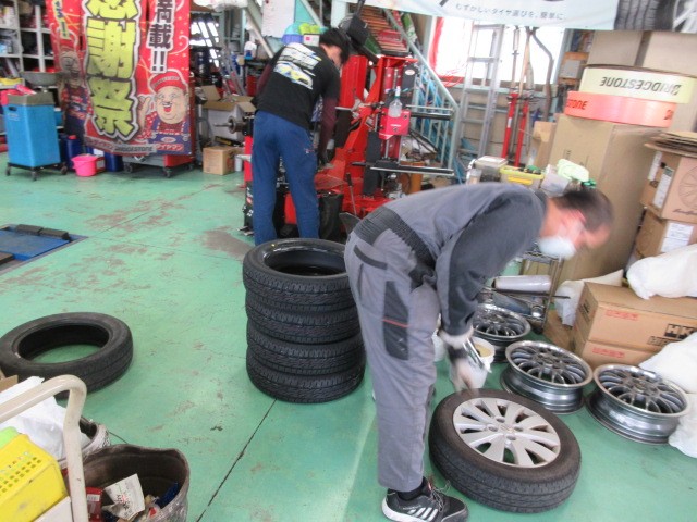N-ワゴンにMRワゴンのタイヤ交換です。