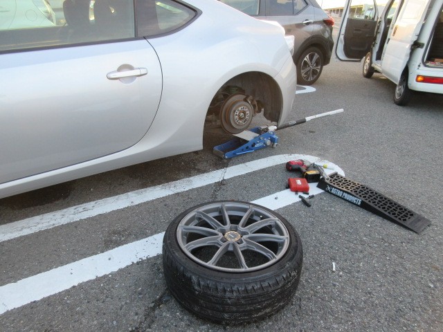 先日関空にパンクの出張に行かせて頂いた、BRZのタイヤが来たので、組付けますね。