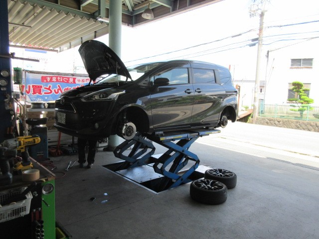 青いカローラスポーツ アライメントが、少しズレているのか?タイヤが、速く摩耗したので、交換します。