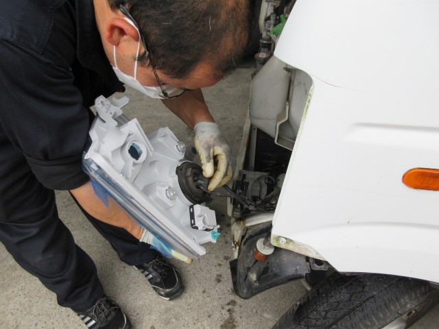 帰って点検していると・・・ヘッドライトがグラグラするので外して行くと、ステーが折れて針金で止めていました。適当な修理してるな~嫌な予感が・・・