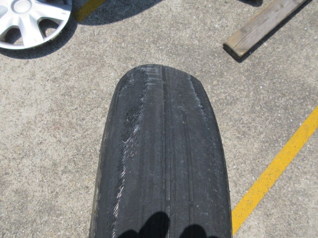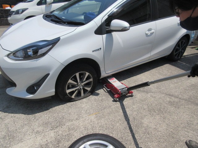 取り合えず転がせるように持って来たスペアータイヤに交換しますね。